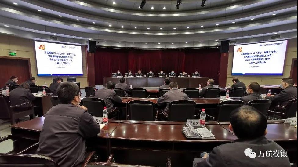 (通訊員 鄧思思 尹力)1月8日,萬航模鍛召開2021年工作會、黨建工作會、黨風(fēng)廉政建設(shè)和反腐敗工作會、安全生產(chǎn)暨環(huán)境保護(hù)工作會、二屆十九次職代會。萬航模鍛黨政班子成員,航空工業(yè)駐二重代表室主任杜建華出席會議。萬航模鍛副總經(jīng)理康峰主持會議。