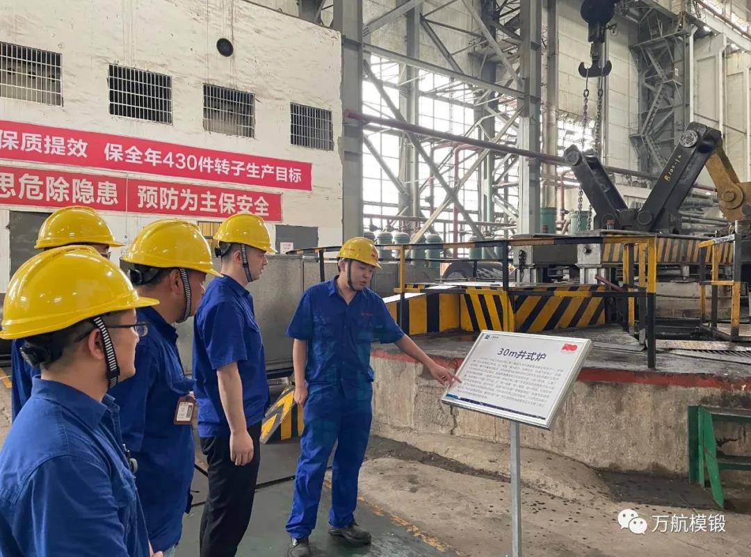 近日,萬航模鍛熱處理廠黨支部、技術(shù)開發(fā)部黨支部組織黨員、入黨積極分子參觀了二重裝備鑄鍛公司熱處理廠噴淬裝置和30米井式爐。