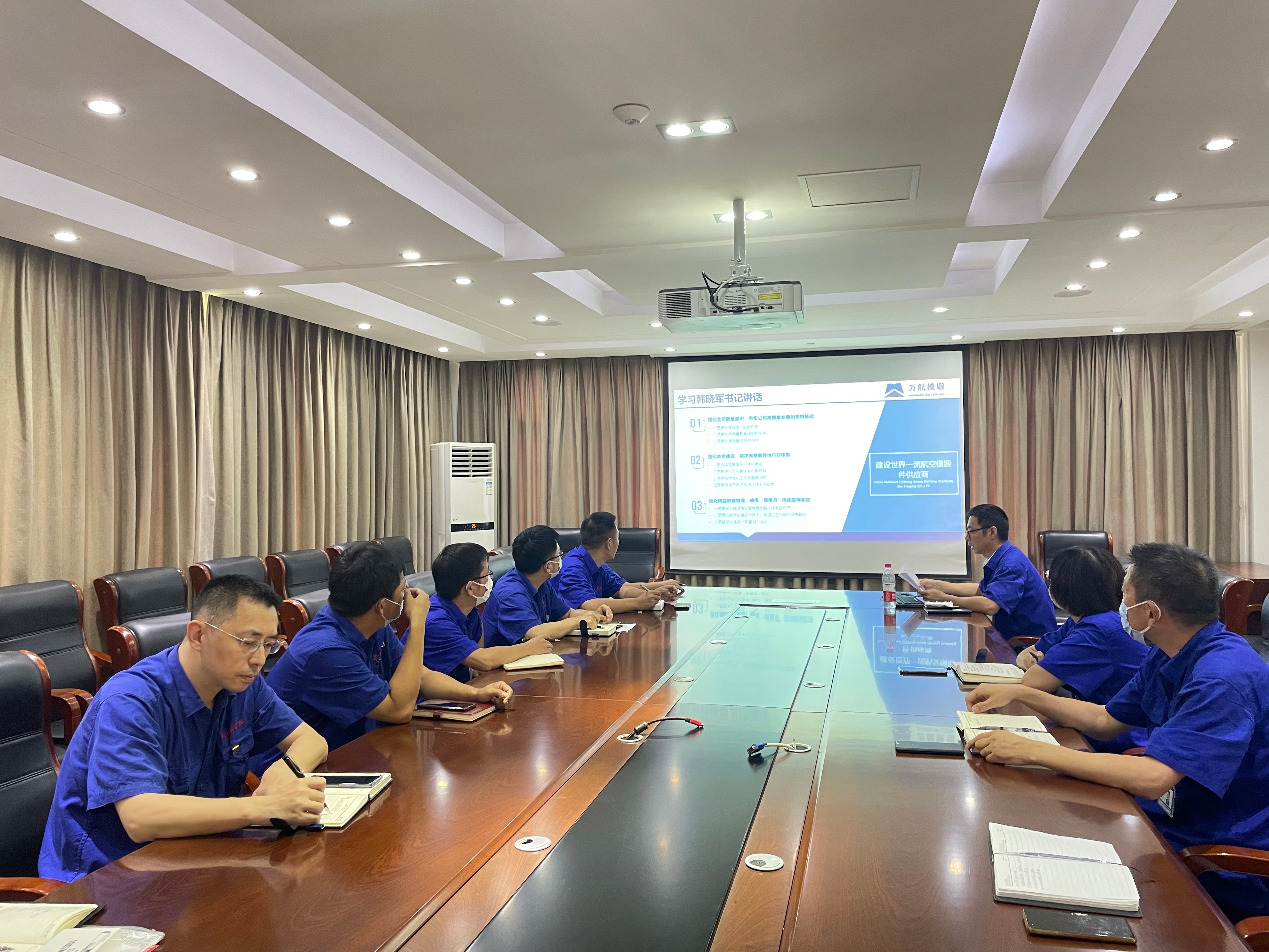 9月2日,萬航模鍛召開“質(zhì)量月”活動啟動會。公司黨委副書記、總經(jīng)理竇忠林出席會議并講話,副總經(jīng)理謝靜主持會議。