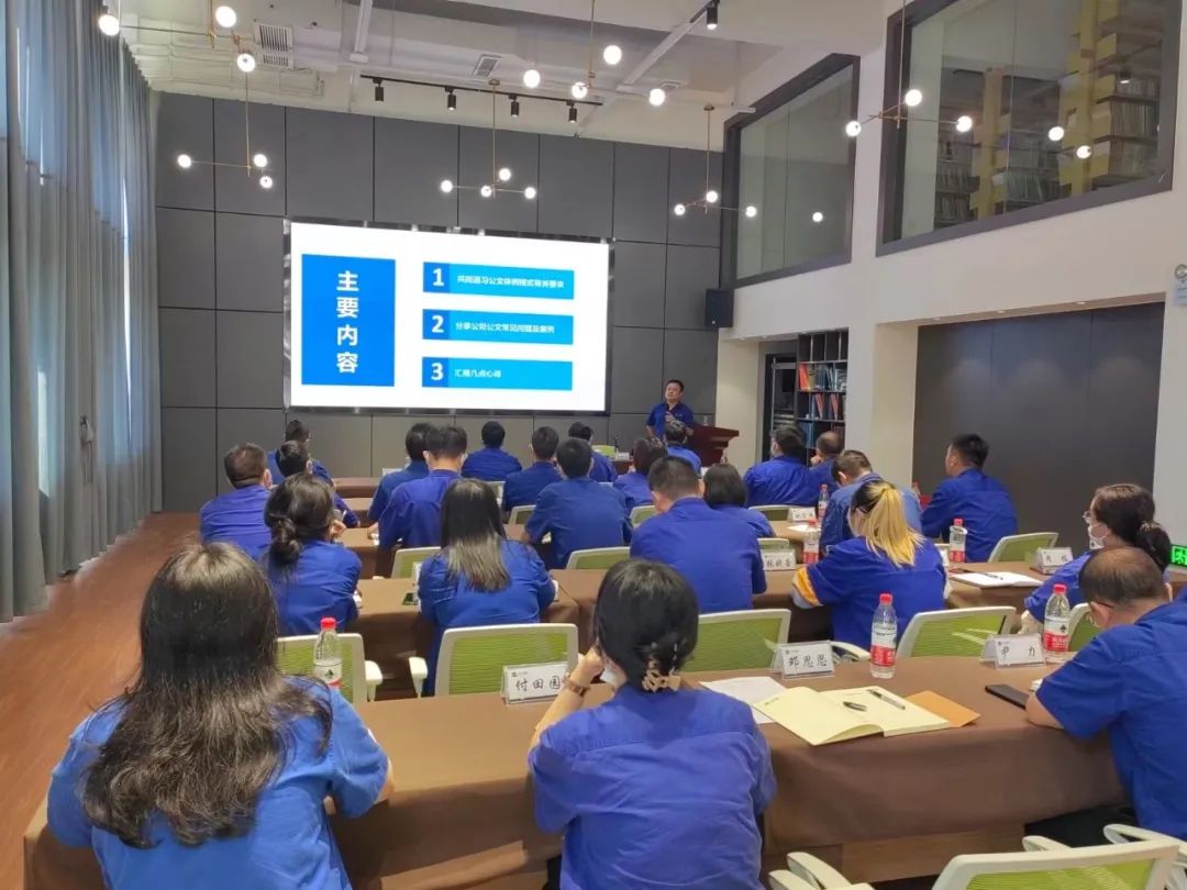 公文處理專題培訓(xùn)特邀國機(jī)重裝綜合管理部副部長楊耀龍進(jìn)行專題講授。培訓(xùn)圍繞公文種類與使用、行文規(guī)則、公文格式等內(nèi)容進(jìn)行了詳細(xì)的講解,并結(jié)合公文處理日常工作實(shí)踐,通過相關(guān)公文案例,列舉了公文處理中常見的問題和容易忽略的細(xì)節(jié)。此次培訓(xùn)針對性強(qiáng)、內(nèi)容豐富、重點(diǎn)突出,對參加培訓(xùn)人員進(jìn)一步提高公文處理水平具有重要的指導(dǎo)意義。
