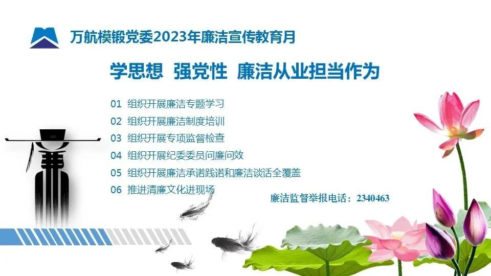 萬航模鍛黨委2023年“廉潔宣傳教育月”全面啟動(dòng)。