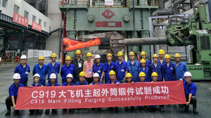 2018年7月21日,二重萬(wàn)航公司承擔(dān)的C919大飛機(jī)主起外筒鍛件成功通過(guò)中國(guó)商飛、德國(guó)利勃海爾公司技術(shù)和質(zhì)量專家為期10天的聯(lián)合現(xiàn)場(chǎng)審核,C919大飛機(jī)國(guó)產(chǎn)化研制工作取得重大突破。