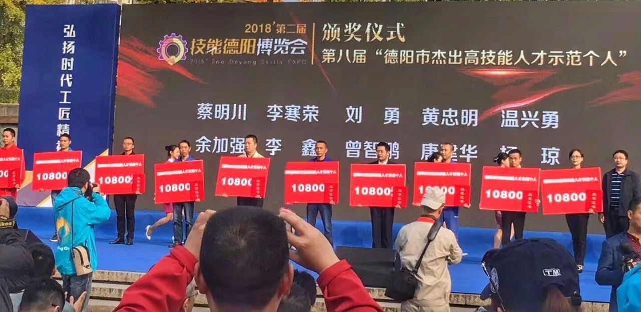 2018年11月2日上午,在2018年第二屆技能德陽博覽會上,萬航公司模鍛廠模鍛工余加強(qiáng)同志獲得第八屆“德陽市杰出高技能人才示范個(gè)人”稱號。