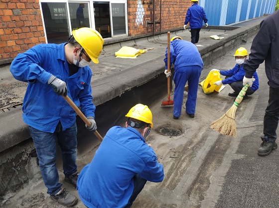 每年從5月開始降雨逐漸增多,廠房屋頂積灰成淤、防洪溝落葉易堵塞排水口,導致排水不暢,造成漏雨和漫水,存安全生產隱患。從4月初開始,各黨支部組織黨員、團員青年對公司內近百處易堵易漏點進行了防洪清淤。鏟淤、通溝、裝袋、搬運,井然有序的防洪突擊,在各黨支部間掀起了爭相比賽。